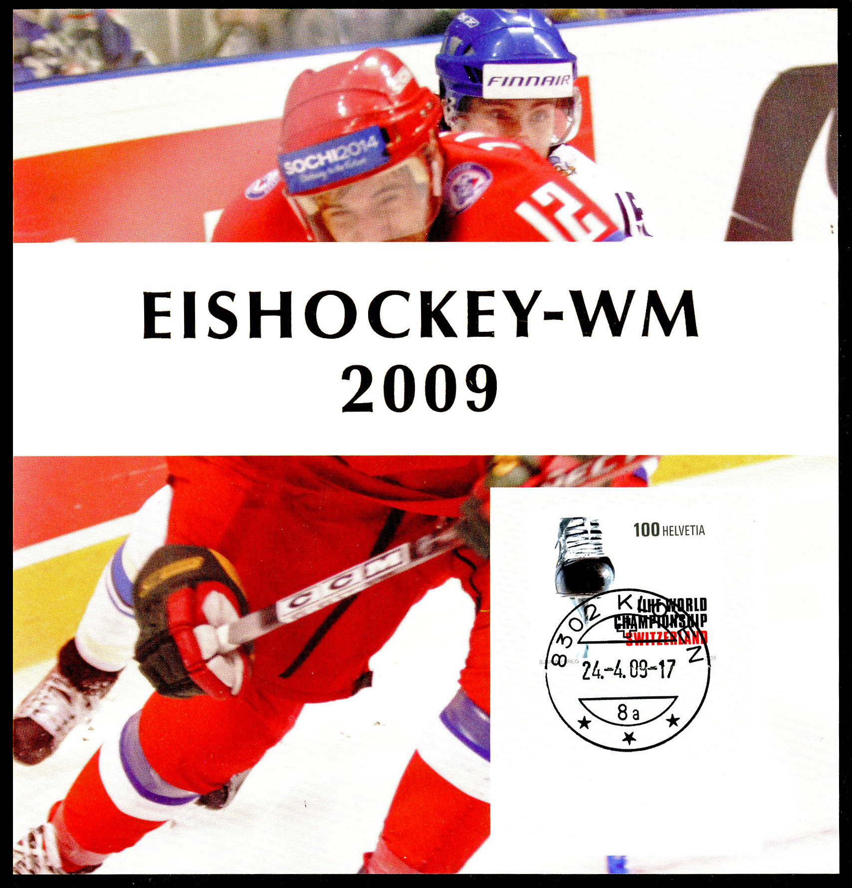 Click here for higher resolution image | First day of issue: April 24, 2009 Occasion: 2009 Men's World Ice Hockey Championships,2009,,Switzerland Width: 141 mm Height: 148 mm Quantity printed: 700 Location: Ice Hockey Volume LXXXIX Stamp ID = 9206 4 page brochure issued with the release of swi-20090305-s-001. The first 2 pages are half width. The brochure also contains a copy of swi-19900306-s-001, the stamp for the previous IIHF tournament held in Switzerland in 1990. The 2 stamps are date stamped with the opening day of the tournament: April 24, 2009. From Linn's "Stamp Issuing Entities Of The World" page. Switzerland (1850-) Stamp-issuing status: active; Population: 7,248,984 (1997 estimate). A land-locked federation in central Europe, situated between France, Germany, Austria and Italy. The country has three official languages: German, French and Italian.In addition from Wikepedia |