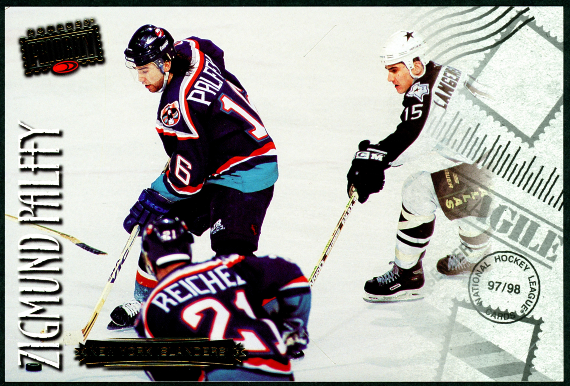 Click here for higher resolution image | First day of issue: April 01, 1998 Width: 152 mm Height: 102 mm Stamp ID = 6713 Location: Box 2001 "Faux post card to go along with guy-19980401-s-022. Hockey card stamp, miscellaneous shows Zigmund Palffy |