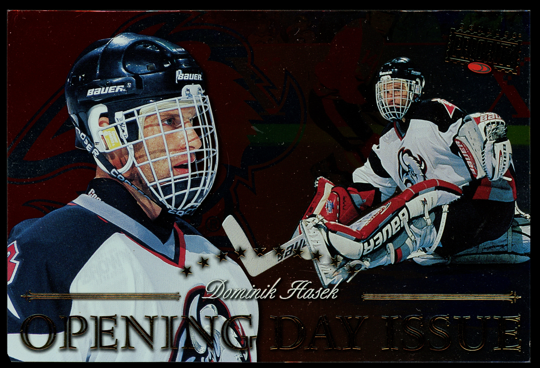 Click here for higher resolution image | First day of issue: April 01, 1998 Width: 152 mm Height: 102 mm Stamp ID = 7454 Location: Box 2006 "Opening Day Issue" faux post card to go along with guy-19980401-s-009. Hockey card stamp, miscellaneous shows Dominik Hasek |