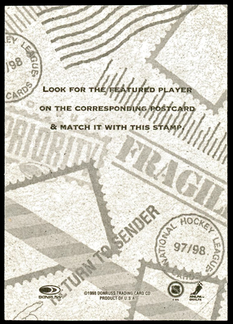 Click here for higher resolution image | First day of issue: April 01, 1998 Width: 63 mm Height: 90 mm Stamp ID = 2675 Location: Hockey card: Donruss Donruss, the hockey card company, produced the hockey card that goes along with the stamp guy-19980401-s-011. Hockey card stamp shows Jarome Iginla |