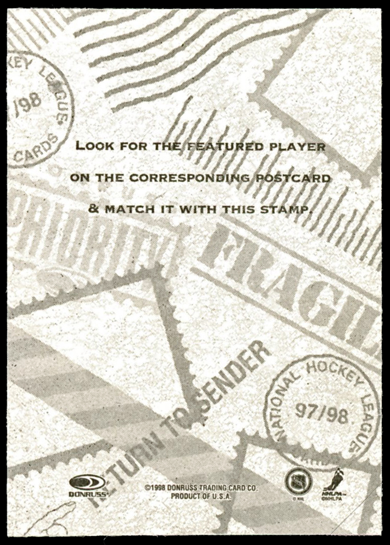 Click here for higher resolution image | First day of issue: April 01, 1998 Width: 63 mm Height: 90 mm Stamp ID = 2689 Location: Hockey card: Donruss Donruss, the hockey card company, produced the hockey card that goes along with the stamp guy-19980401-s-018. Hockey card stamp shows Patrick Marleau |