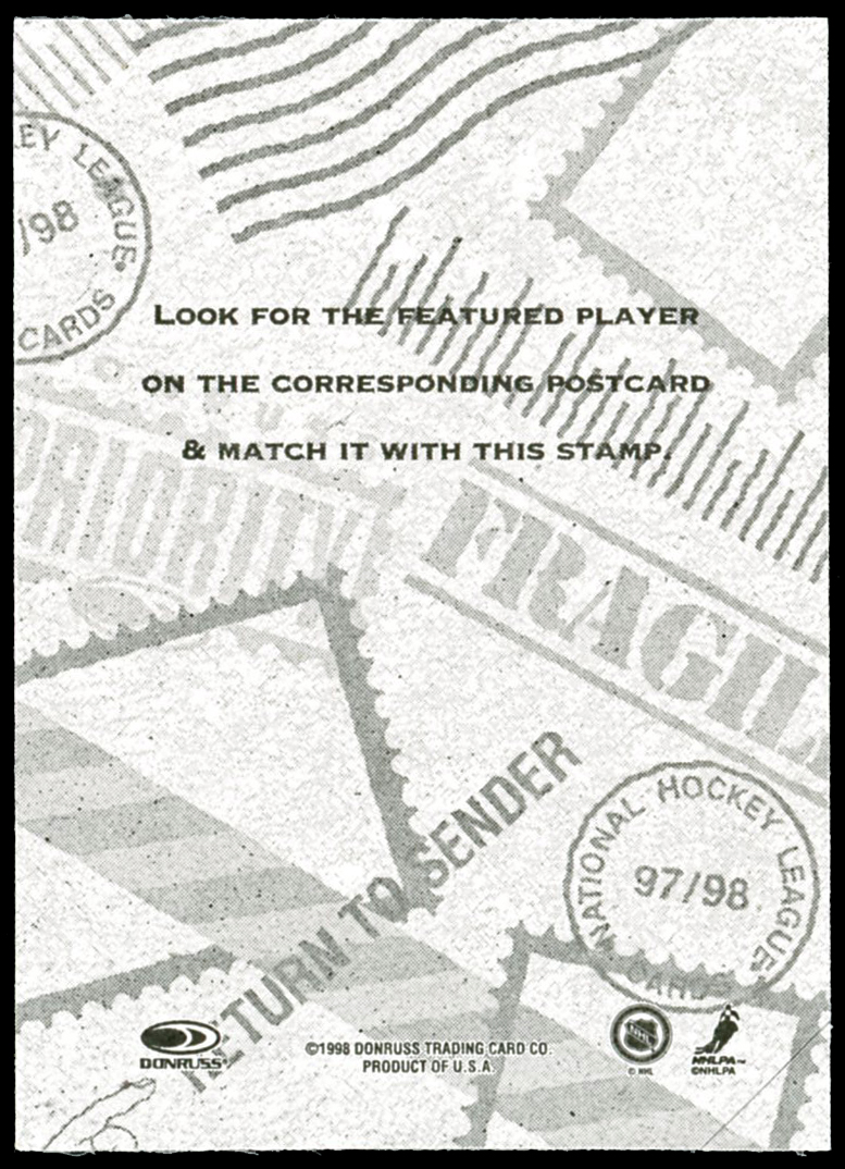 Click here for higher resolution image | First day of issue: April 01, 1998 Width: 63 mm Height: 90 mm Stamp ID = 8993 Location: Hockey card: Donruss Donruss, the hockey card company, produced the hockey card that goes along with the stamp guy-19980401-s-040. Hockey card stamp shows Pavel Bure |