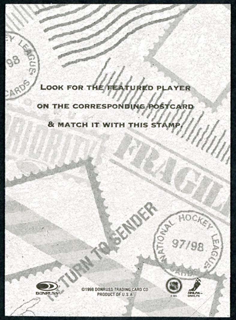 Click here for higher resolution image | First day of issue: April 01, 1998 Width: 63 mm Height: 90 mm Stamp ID = 8997 Location: Hockey card: Donruss Donruss, the hockey card company, produced the hockey card that goes along with the stamp guy-19980401-s-044. Hockey card stamp shows Wayne Gretzky |