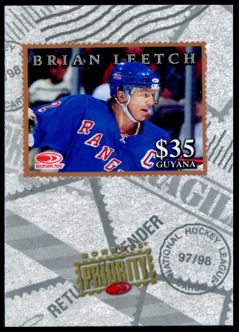 Click here for higher resolution image | First day of issue: April 01, 1998 Width: 63 mm Height: 90 mm Stamp ID = 9005 Location: Hockey card: Donruss Donruss, the hockey card company, produced the hockey card that goes along with the stamp guy-19980401-s-052. Hockey card stamp shows Brian Leetch |
