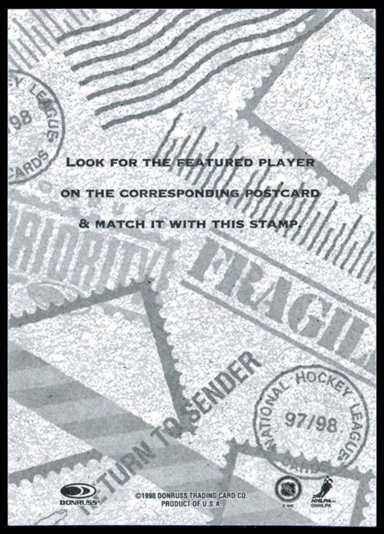 Click here for higher resolution image | First day of issue: April 01, 1998 Width: 63 mm Height: 90 mm Stamp ID = 9005 Location: Hockey card: Donruss Donruss, the hockey card company, produced the hockey card that goes along with the stamp guy-19980401-s-052. Hockey card stamp shows Brian Leetch |