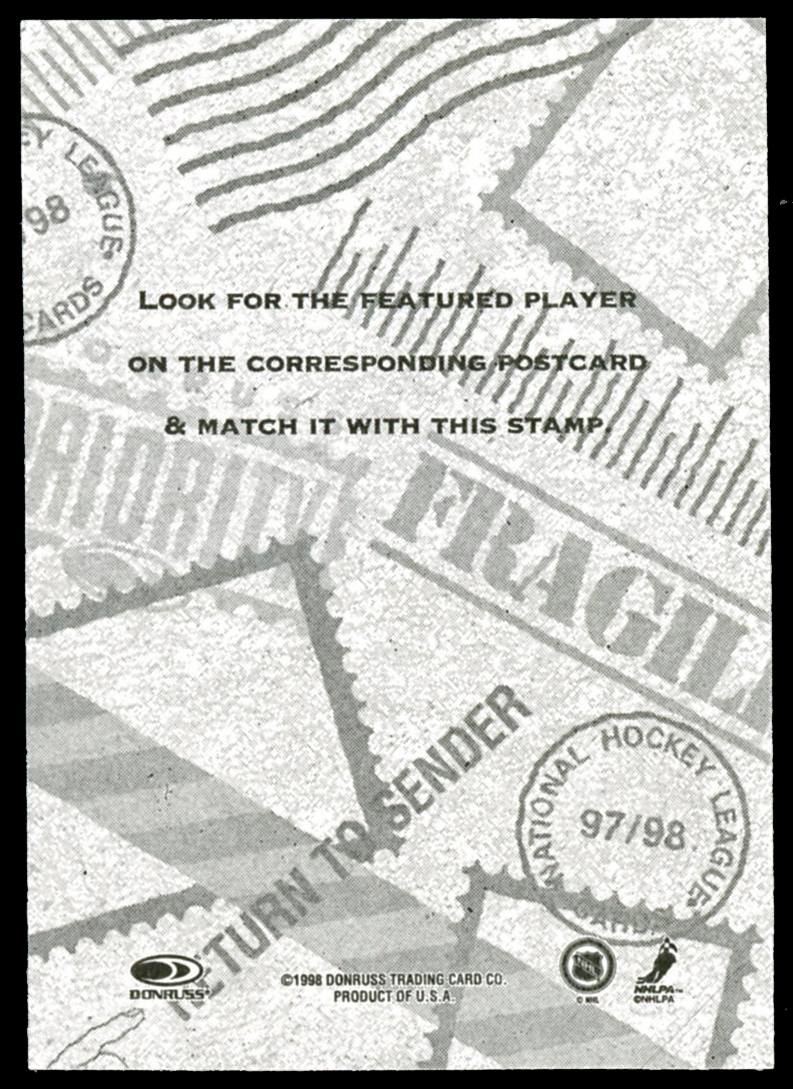 Click here for higher resolution image | First day of issue: April 01, 1998 Width: 63 mm Height: 90 mm Stamp ID = 9019 Location: Hockey card: Donruss Donruss, the hockey card company, produced the hockey card that goes along with the stamp guy-19980401-s-066. Hockey card stamp shows Ryan Smyth |
