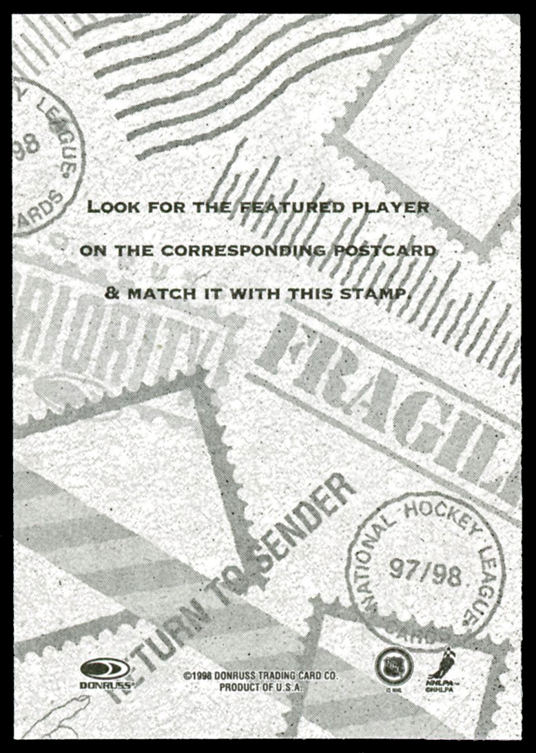 Click here for higher resolution image | First day of issue: April 01, 1998 Width: 63 mm Height: 90 mm Stamp ID = 9021 Location: Hockey card: Donruss Donruss, the hockey card company, produced the hockey card that goes along with the stamp guy-19980401-s-068. Hockey card stamp shows Joe Thornton |