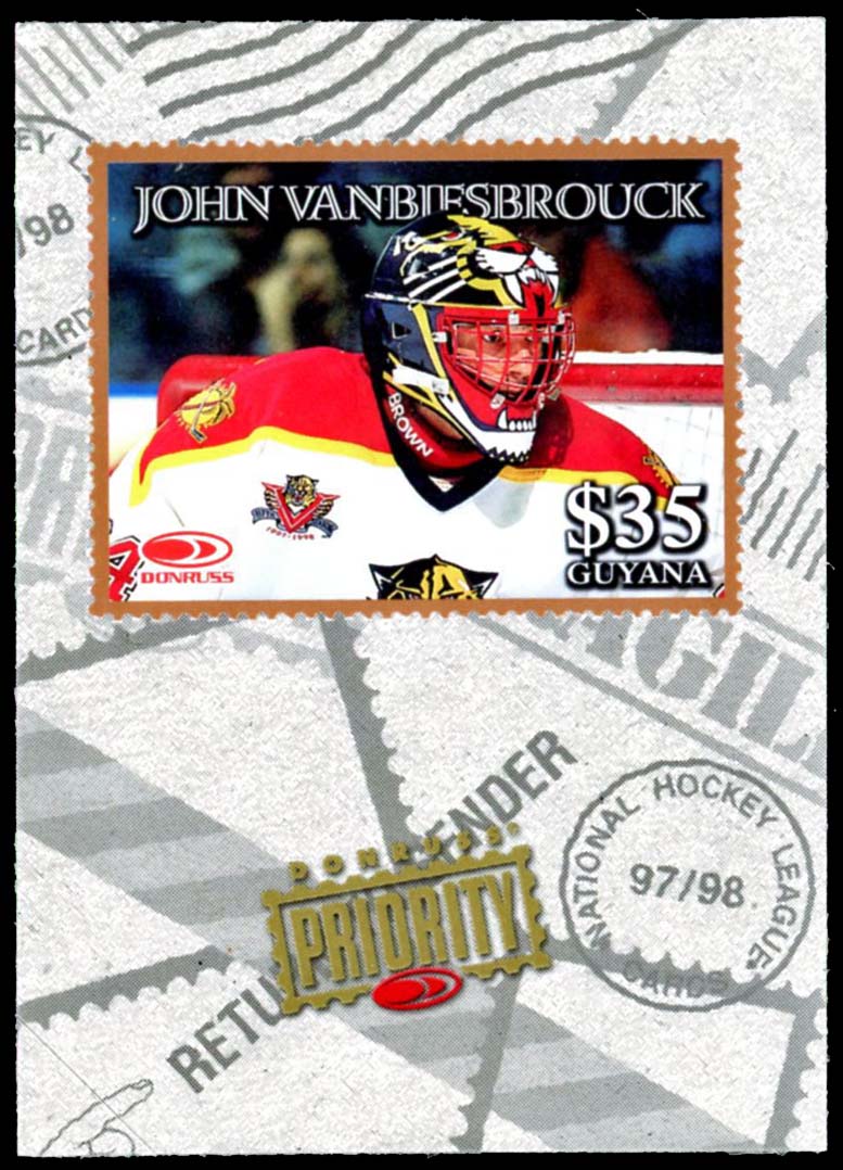 Click here for higher resolution image | First day of issue: April 01, 1998 Width: 63 mm Height: 90 mm Stamp ID = 9023 Location: Hockey card: Donruss Donruss, the hockey card company, produced the hockey card that goes along with the stamp guy-19980401-s-070. Hockey card stamp shows John Vanbiesbrouck |