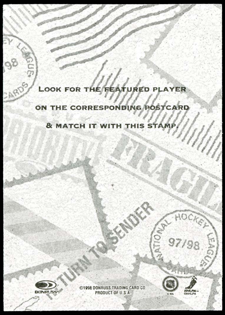 Click here for higher resolution image | First day of issue: April 01, 1998 Width: 63 mm Height: 90 mm Stamp ID = 9024 Location: Hockey card: Donruss Donruss, the hockey card company, produced the hockey card that goes along with the stamp guy-19980401-s-071. Hockey card stamp shows Steve Yzerman |