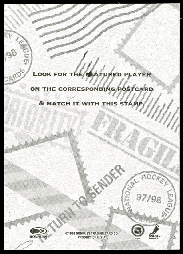 Click here for higher resolution image | First day of issue: April 01, 1998 Width: 63 mm Height: 90 mm Stamp ID = 9027 Location: Hockey card: Donruss Donruss, the hockey card company, produced the hockey card that goes along with the stamp guy-19980401-s-074. Hockey card stamp shows Ray Bourque |
