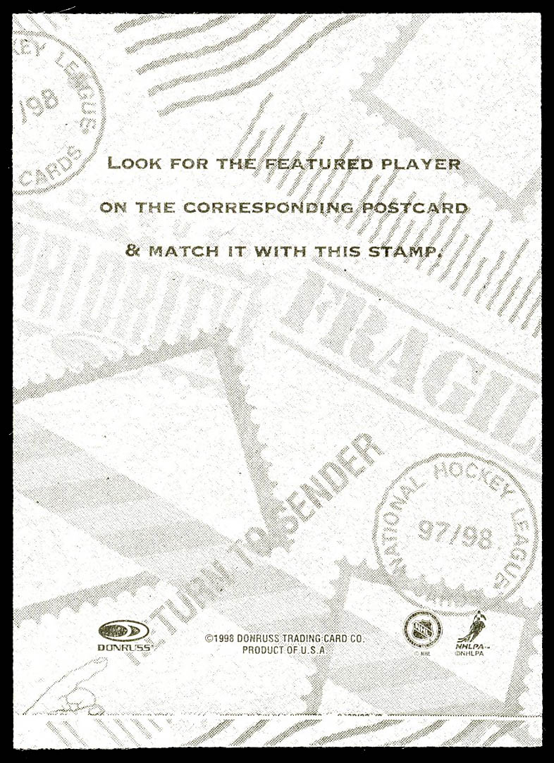 Click here for higher resolution image | First day of issue: April 01, 1998 Width: 63 mm Height: 90 mm Stamp ID = 9031 Location: Hockey card: Donruss Donruss, the hockey card company, produced the hockey card that goes along with the stamp guy-19980401-s-078. Hockey card stamp shows Sergei Fedorov |