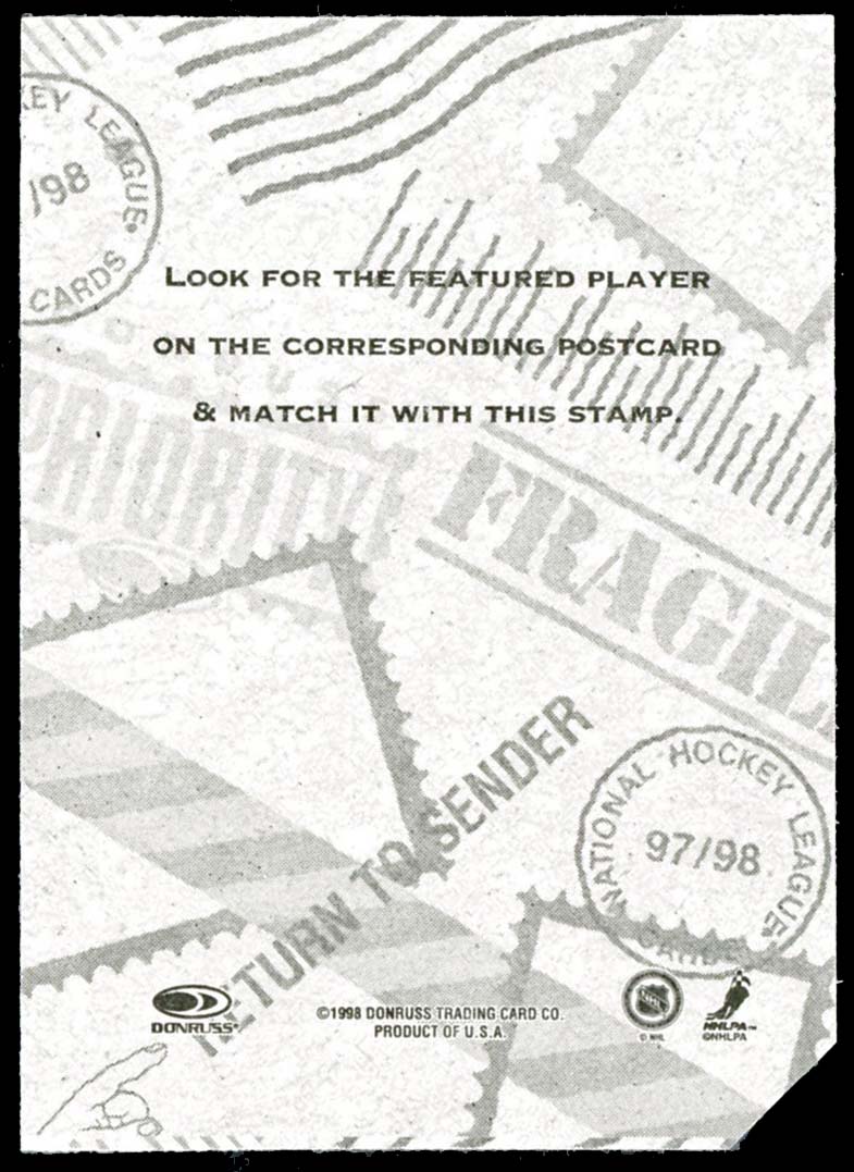 Click here for higher resolution image | First day of issue: April 01, 1998 Width: 63 mm Height: 90 mm Stamp ID = 9034 Location: Hockey card: Donruss Donruss, the hockey card company, produced the hockey card that goes along with the stamp guy-19980401-s-081. Hockey card stamp shows Dominik Hasek |