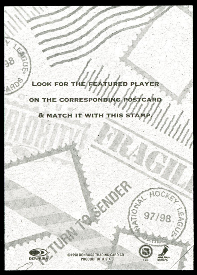 Click here for higher resolution image | First day of issue: April 01, 1998 Width: 63 mm Height: 90 mm Stamp ID = 9038 Location: Hockey card: Donruss Donruss, the hockey card company, produced the hockey card that goes along with the stamp guy-19980401-s-085. Hockey card stamp shows Paul Kariya |