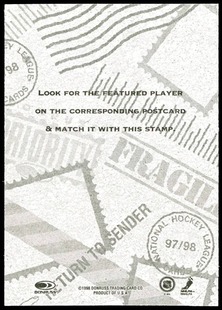 Click here for higher resolution image | First day of issue: April 01, 1998 Width: 63 mm Height: 90 mm Stamp ID = 9040 Location: Hockey card: Donruss Donruss, the hockey card company, produced the hockey card that goes along with the stamp guy-19980401-s-087. Hockey card stamp shows John LeClair |