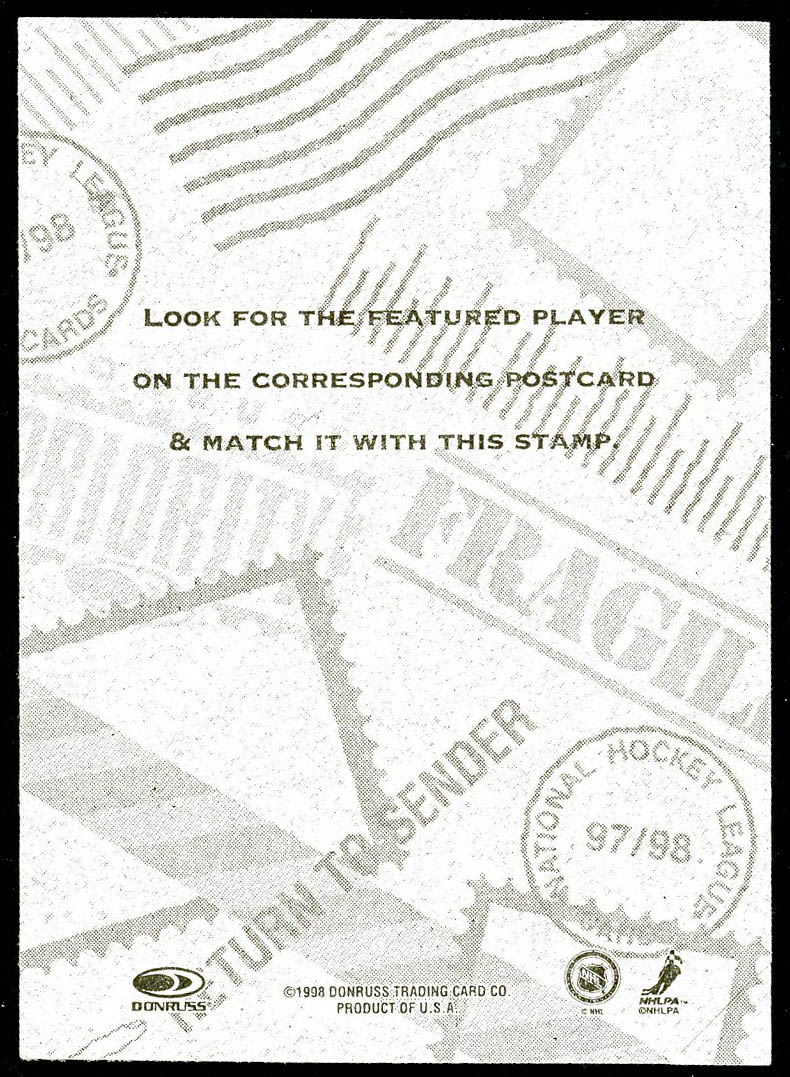Click here for higher resolution image | First day of issue: April 01, 1998 Width: 63 mm Height: 90 mm Stamp ID = 9053 Location: Hockey card: Donruss Donruss, the hockey card company, produced the hockey card that goes along with the stamp guy-19980401-s-100. Hockey card stamp shows Teemu Selanne |