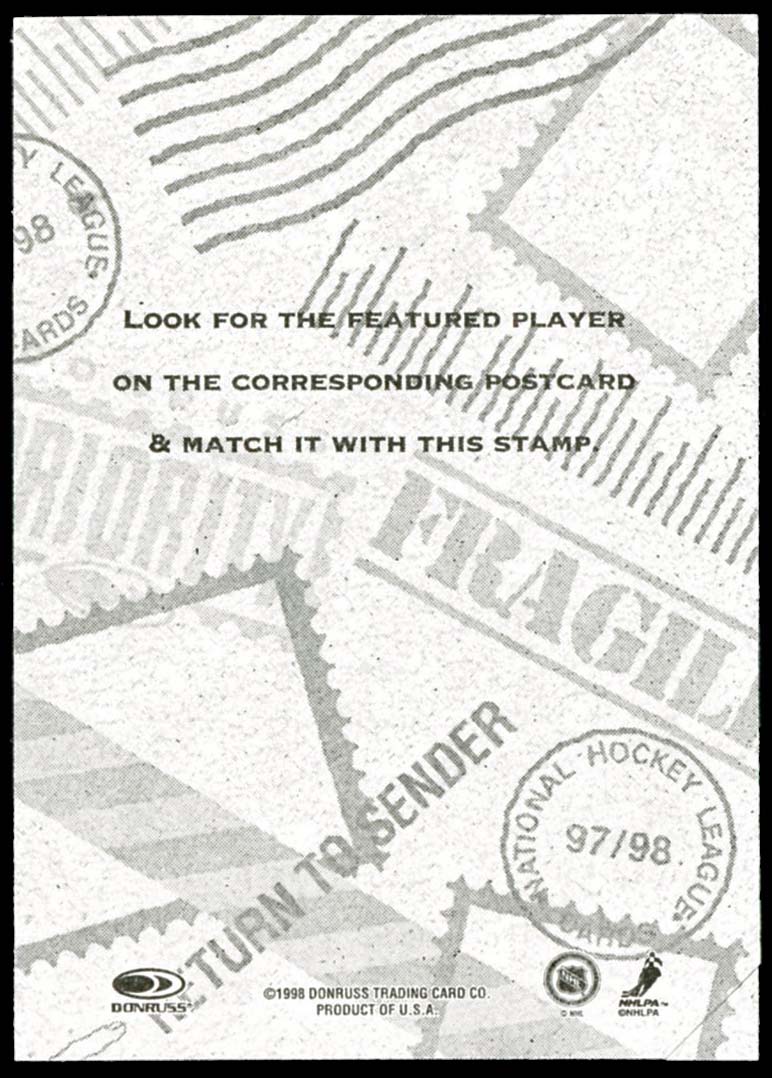 Click here for higher resolution image | First day of issue: April 01, 1998 Width: 63 mm Height: 90 mm Stamp ID = 9060 Location: Hockey card: Donruss Donruss, the hockey card company, produced the hockey card that goes along with the stamp guy-19980401-s-107. Hockey card stamp shows Steve Yzerman |