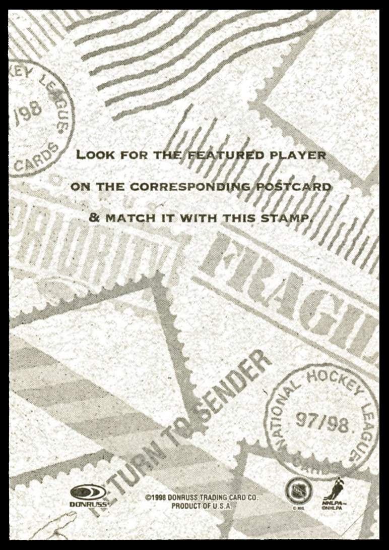 Click here for higher resolution image | First day of issue: April 01, 1998 Width: 63 mm Height: 90 mm Stamp ID = 9073 Location: Hockey card: Donruss Donruss, the hockey card company, produced the hockey card that goes along with the stamp guy-19980401-s-120. Hockey card stamp shows Jaromir Jagr |