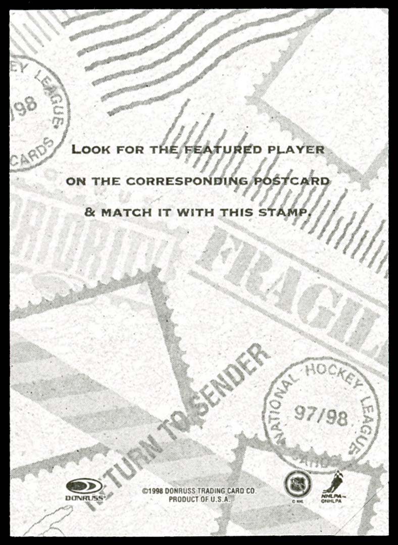 Click here for higher resolution image | First day of issue: April 01, 1998 Width: 63 mm Height: 90 mm Stamp ID = 9076 Location: Hockey card: Donruss Donruss, the hockey card company, produced the hockey card that goes along with the stamp guy-19980401-s-123. Hockey card stamp shows John LeClair |