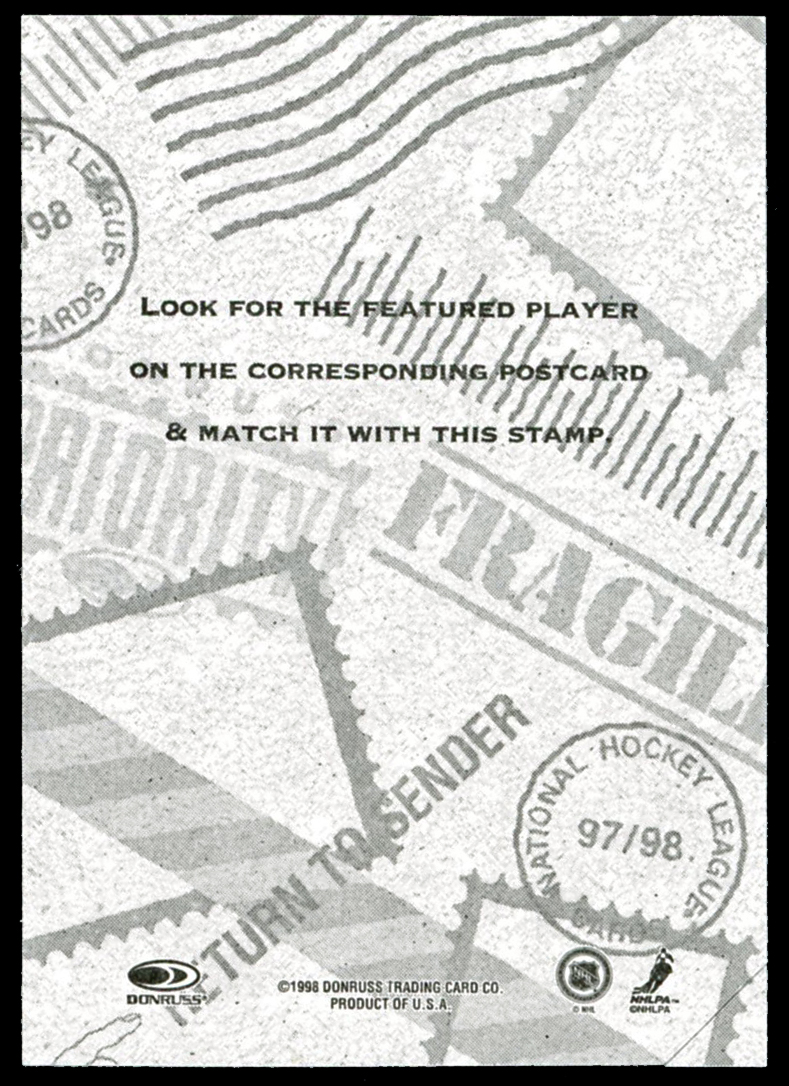 Click here for higher resolution image | First day of issue: April 01, 1998 Width: 63 mm Height: 90 mm Stamp ID = 9089 Location: Hockey card: Donruss Donruss, the hockey card company, produced the hockey card that goes along with the stamp guy-19980401-s-136. Hockey card stamp shows Teemu Selanne |