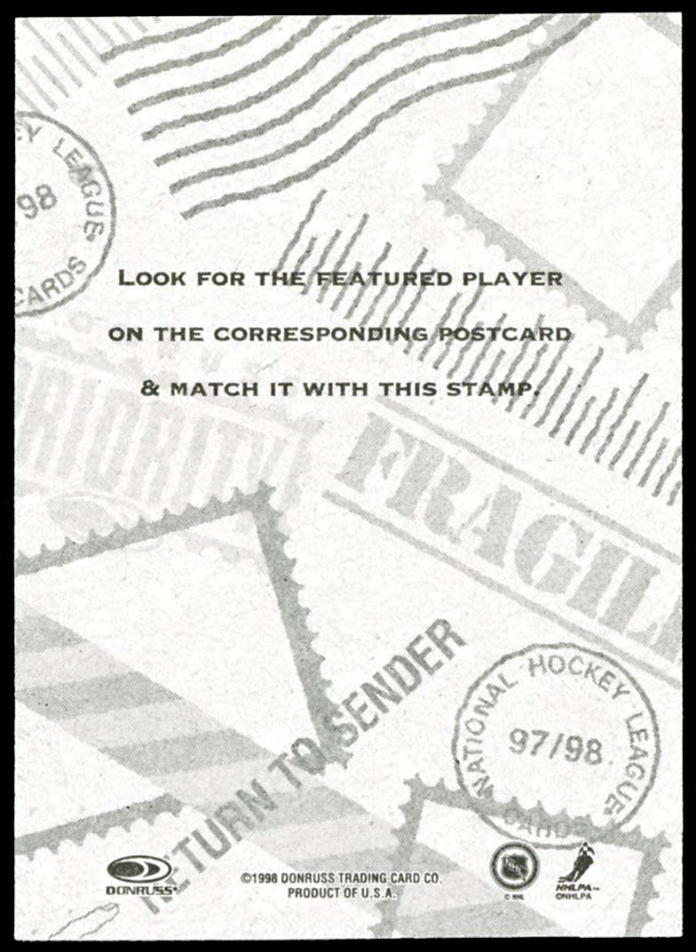Click here for higher resolution image | First day of issue: April 01, 1998 Width: 63 mm Height: 90 mm Stamp ID = 9096 Location: Hockey card: Donruss Donruss, the hockey card company, produced the hockey card that goes along with the stamp guy-19980401-s-143. Hockey card stamp shows Steve Yzerman |