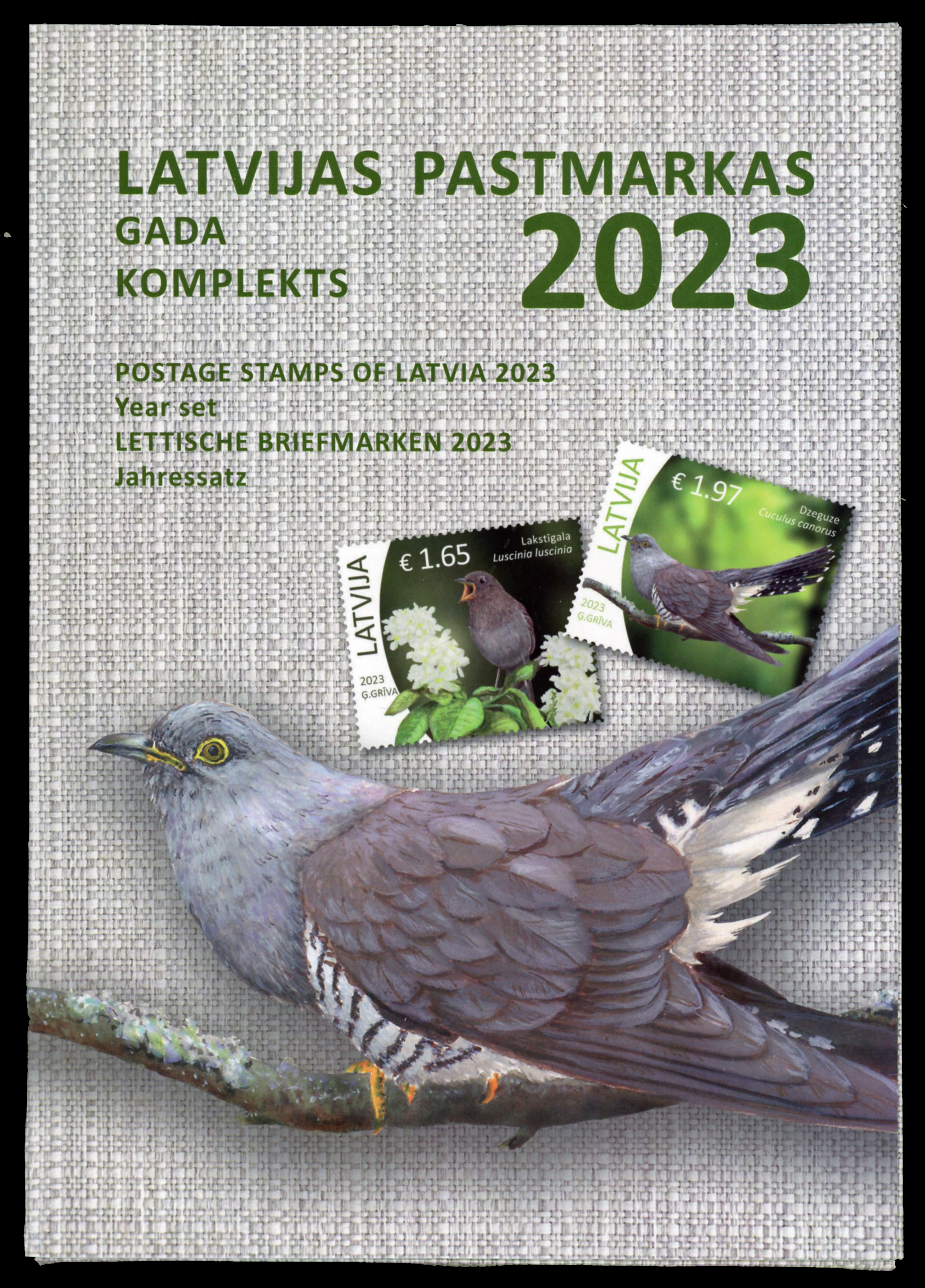 Click here for higher resolution image | First day of issue: 2023 Width: 150 mm Height: 210 mm Location: Oversize album #17 Stamp ID = 8721 2023 Year Set of Latvia's stamps. Housed in a hard paper folder and consisting of