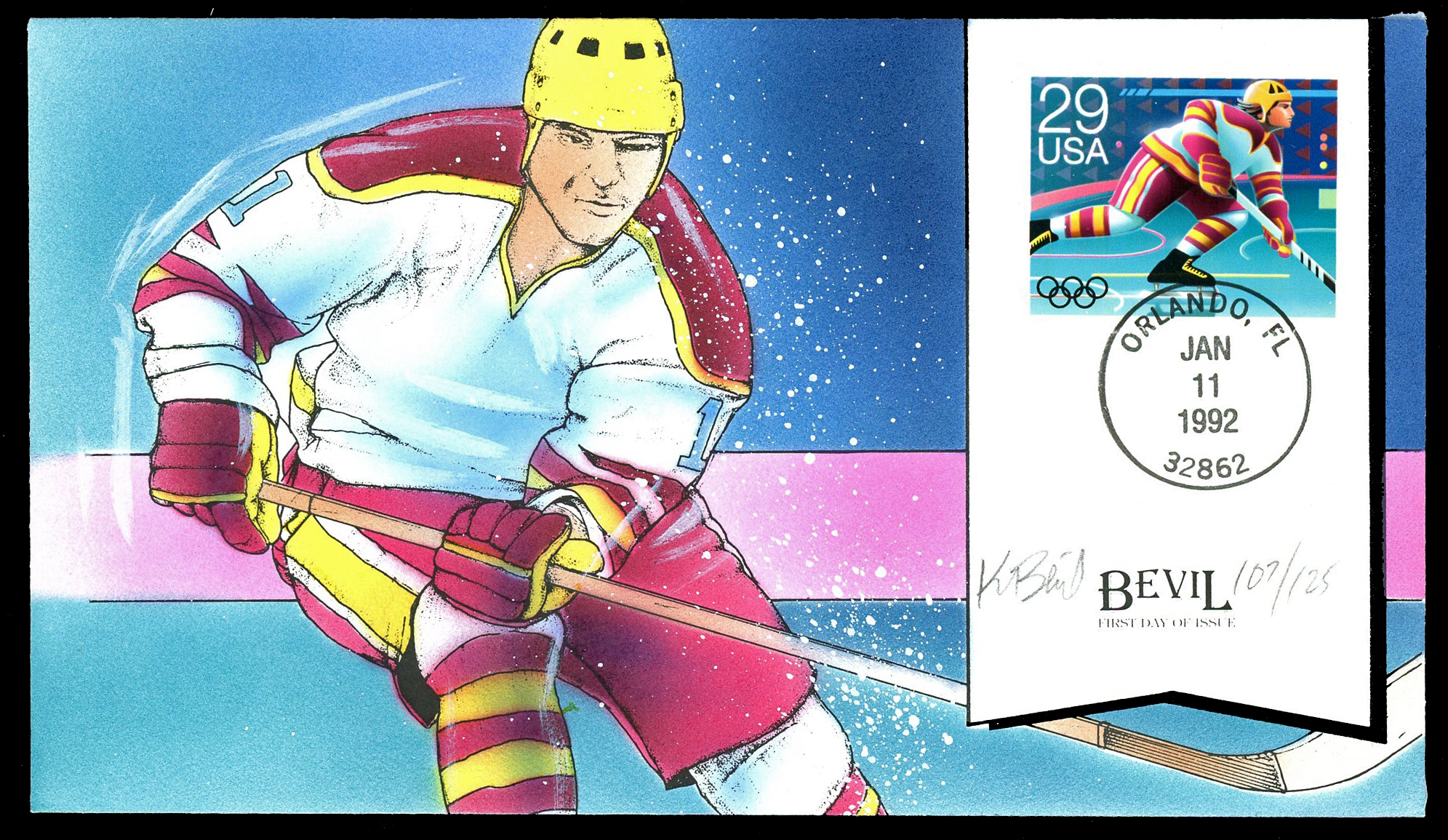 Click here for higher resolution image | First Day Cover for usa-19920111-s-001 First day of issue: January 11, 1992 Width: 165 mm Height: 93 mm Cachet maker: Bevil Location: Box 1012 Idfdc = 2005 From Linn's "Stamp Issuing Entities Of The World" page. United States of America (1847-) Stamp-issuing status: active; Population: 248,709,873 (1990). Republic occupying the central portion of North America, along with Alaska, Hawaii and a large number of island possessions in the Caribbean Sea and the Pacific Ocean. |