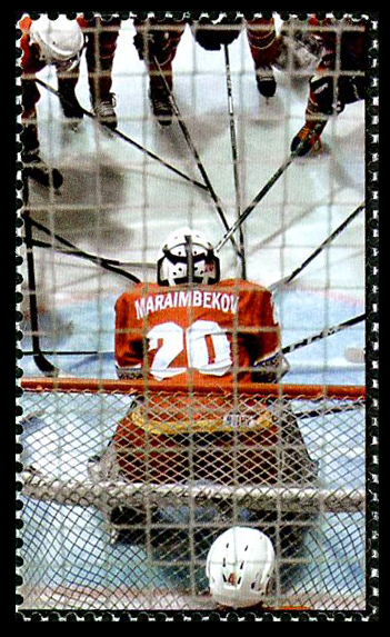 Click here for higher resolution image | First day of issue: June 27, 2025 Width: 28 mm Height: 46 mm Perforation: Perforated 14.50 x 14.00 Printing method: Offset lithography Printer: Nova Imprim, Chisinau, Moldova Quantity printed: 1,000 Creative team: Daria Maier, Designer Location: Ice Hockey Volume LXIII Stamp ID = 9223 Label from kyr-20250627-y-001 located as shown