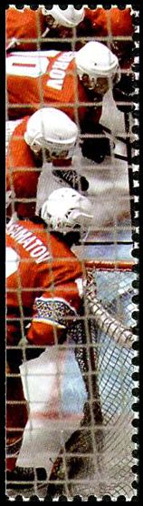 Click here for higher resolution image | First day of issue: June 27, 2025 Width: 12 mm Height: 46 mm Perforation: Imperforate on left side 14.50 x 14.00 Printing method: Offset lithography Printer: Nova Imprim, Chisinau, Moldova Quantity printed: 1,750 Creative team: Daria Maier, Designer Location: Ice Hockey Volume LXIII Stamp ID = 9232 Label from kyr-20250627-g-001 located as shown