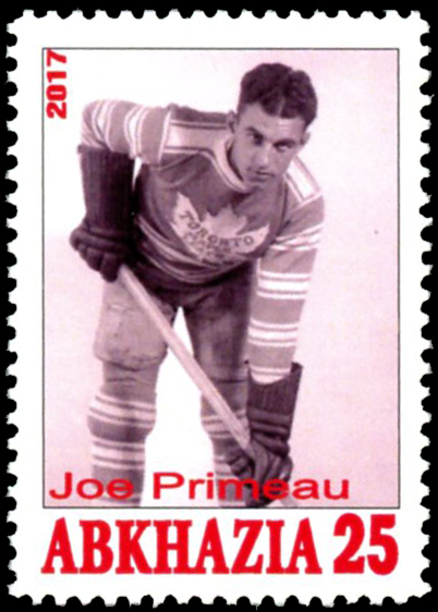 Click here for higher resolution image | First day of issue: 2017 Width: 33 mm Height: 46 mm Perforation: Perforated 10.50 x 10.50 Location: Ice Hockey Volume I Stamp ID = 5438 Local post shows Joe Primeau From Linn's "Stamp Issuing Entities Of The World" page. Abkhazia (1995-) Stamp-issuing status: active; Population: 537,000 (1989). An autonomous region of the republic of Georgia, located on the Black Sea. Since 1995, many pictorial sets and souvenir sheets, offered as local issues, have appeared on the market. These are bogus, issued by private individuals for sale to collectors. |