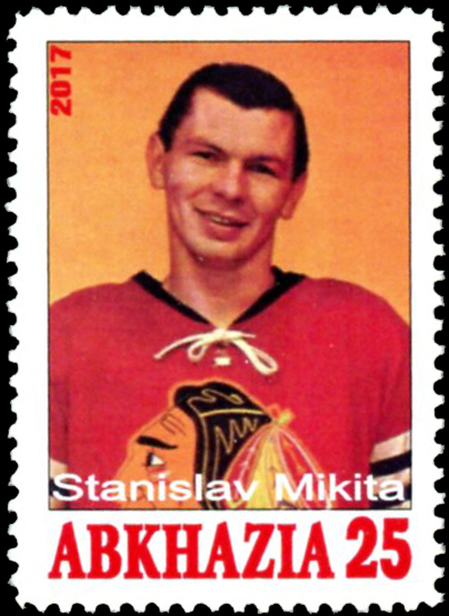 Click here for higher resolution image | First day of issue: 2017 Width: 33 mm Height: 46 mm Perforation: Perforated 10.50 x 10.50 Location: Ice Hockey Volume I Stamp ID = 5441 Local post shows Stan Mikita From Linn's "Stamp Issuing Entities Of The World" page. Abkhazia (1995-) Stamp-issuing status: active; Population: 537,000 (1989). An autonomous region of the republic of Georgia, located on the Black Sea. Since 1995, many pictorial sets and souvenir sheets, offered as local issues, have appeared on the market. These are bogus, issued by private individuals for sale to collectors. |
