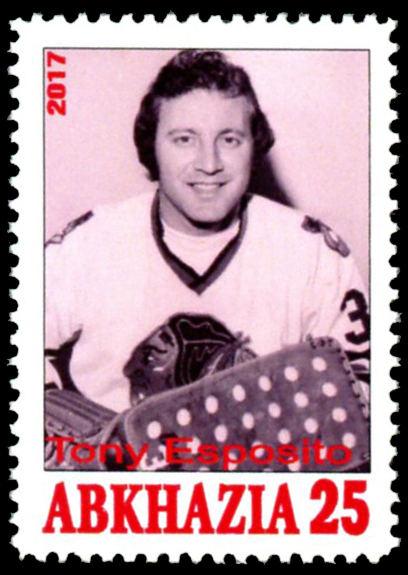Click here for higher resolution image | First day of issue: 2017 Width: 33 mm Height: 46 mm Perforation: Perforated 10.50 x 10.50 Location: Ice Hockey Volume I Stamp ID = 5444 Local post shows Tony Esposito From Linn's "Stamp Issuing Entities Of The World" page. Abkhazia (1995-) Stamp-issuing status: active; Population: 537,000 (1989). An autonomous region of the republic of Georgia, located on the Black Sea. Since 1995, many pictorial sets and souvenir sheets, offered as local issues, have appeared on the market. These are bogus, issued by private individuals for sale to collectors. |