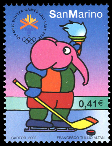 Click here for higher resolution image | First day of issue: January 16, 2002 Occasion: 2002 Winter Olympics, 2002, Salt Lake City, United States Width: 30 mm Height: 40 mm Perforation: Perforated 13.25 x 13.00 Catalog number: Scott 1531d Location: Ice Hockey Volume LXXVII Stamp ID = 3295 From Linn's "Stamp Issuing Entities Of The World" page. San Marino (1877-) Stamp-issuing status: active; Population: 24,714 (1997 estimate). A tiny independent republic in central Italy. Surrounded on all sides by Italy, San Marino has maintained its independence since the 4th century A.D. It is the world's smallest republic and claims to be Europe's oldest state. Postage stamps and tourism are the country's major industries. |