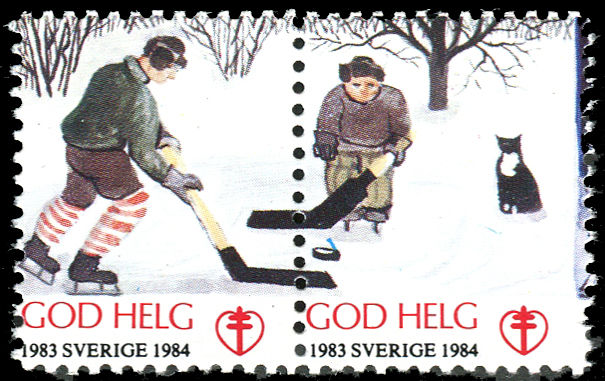 Click here for higher resolution image | First day of issue: 1983 Width: 48 mm Height: 29 mm Perforation: Perforated 10.75 x 10.75 Location: Ice Hockey Volume LXXXV Stamp ID = 3518 SeTenant pairswe-19830000-h-003 andswe-19830000-h-004. From Linn's "Stamp Issuing Entities Of The World" page. Sweden (1855-) Stamp-issuing status: active; Population: 8,946,193 (1997 estimate). Constitutional monarchy in northern Europe, occupying the eastern portion of the Scandinavian Peninsula. |